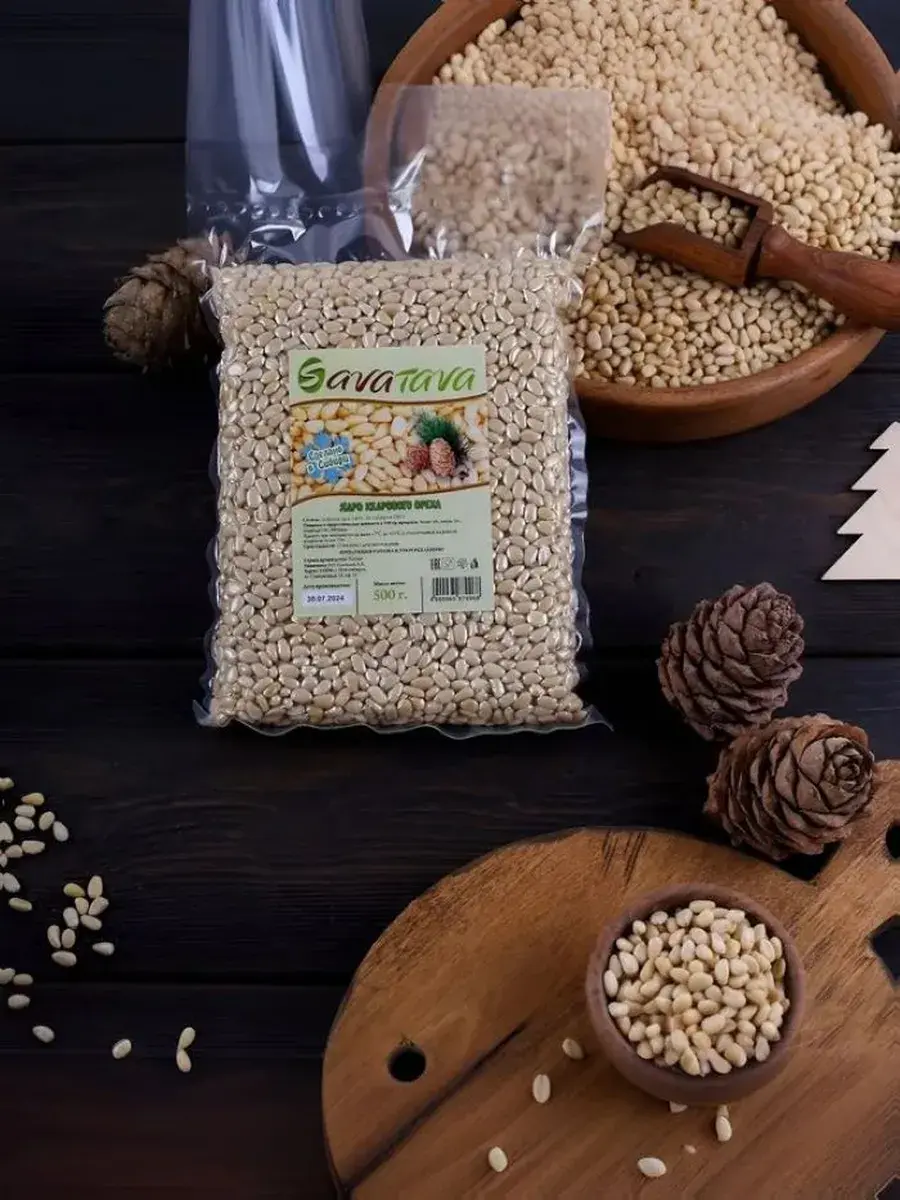 При изготовлении используется щадящая технология, позволяющая сохранить все первоначальные свойства ядра. Технологический процесс без мойки, сушки и консервации, только натуральное ядро. Кедровый орех содержит практически все незаменимые аминокислоты, полиненасыщенные жирные кислоты, витамины, минеральные элементы. Идеальным считается сочетание с сухофрукатами (такими как: изюм, курага, инжир и цукаты ) - данная смесь образует вкусный а главное полезный суперфуд. На ряду с такими орехами как: кешью, миндаль, арахис , грецкий орех, фундук, фисташки обладает весьма богатой историей и культурой потребления по всему миру. Диетический и натуральный продукт; Для Веганов; Похудение, очищение, детокс; пп продукты